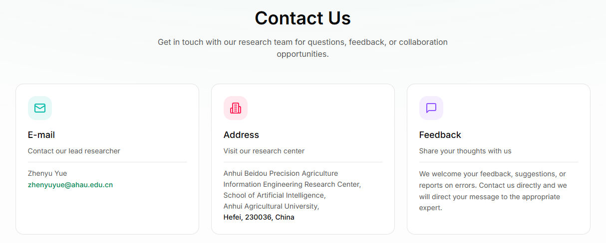 - • If you encounter any issues, please contact zhenyuyue@ahau.edu.cn