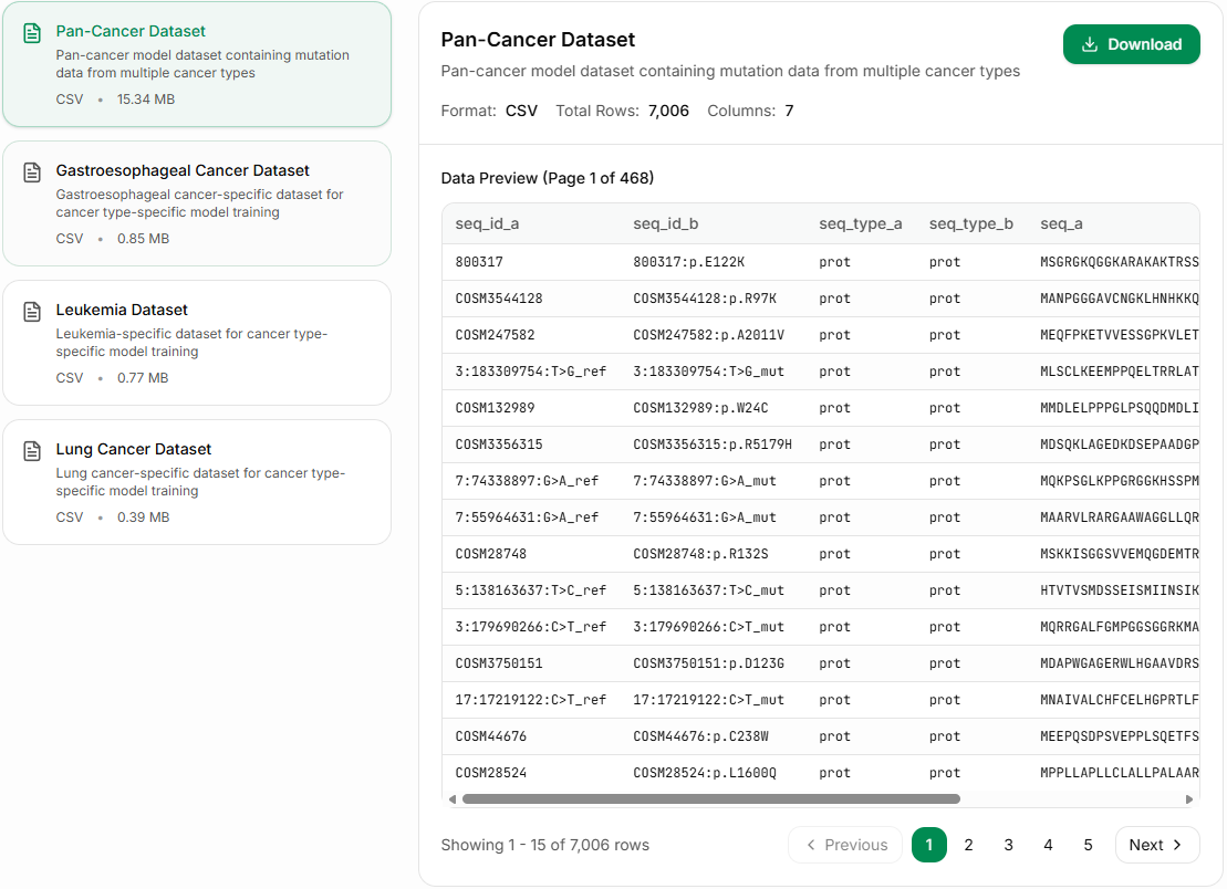 Universal prediction model applicable to multiple cancer types, supporting single sequence prediction and batch CSV file prediction.